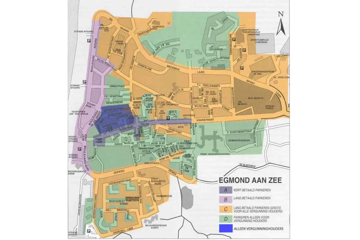 In Egmond aan Zee geldt een parkeerregeling. Deze geldt van van 1 maart tot 1 november voor alle dagen en buiten deze periode op de zaterdag en zondag. U kunt dan nagenoeg nergens gratis parkeren en in (delen van) wijken is parkeren uitsluitend toegestaan voor vergunninghouders. Dit zijn meestal buurtbewoners en als gast kunt u daar ook uw auto neerzetten als u over een vergunning beschikt.